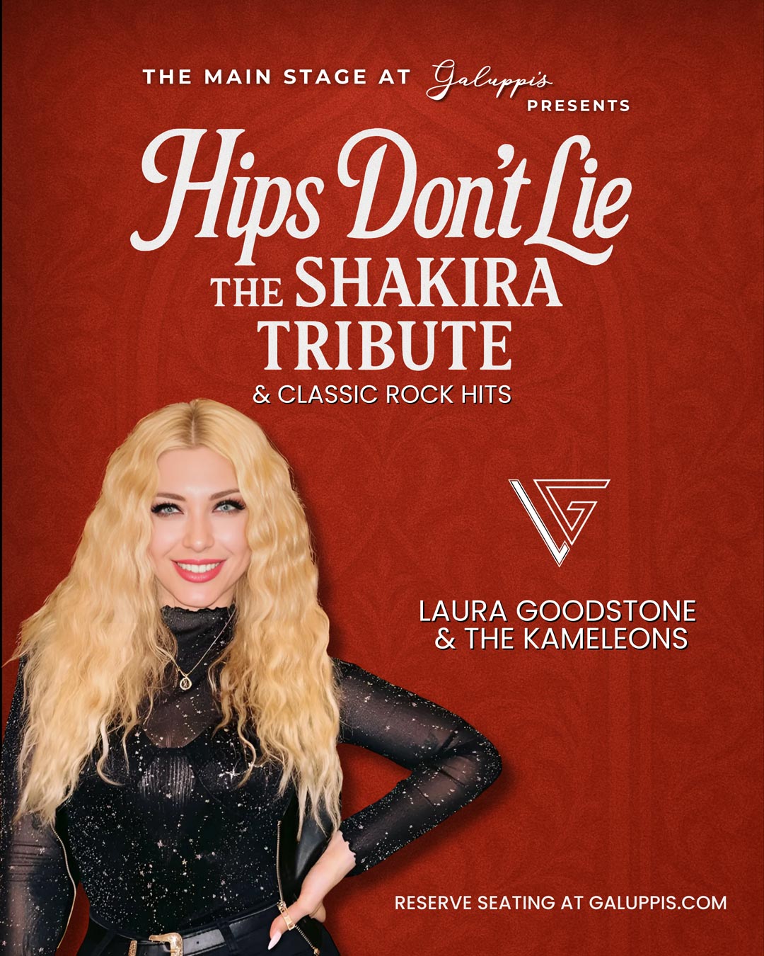 Laura Goodstone & The Kameleons open the night with a high-energy variety set packed with the very best in classic rock, Top 40, and country. From Guns N’ Roses, Journey, Bon Jovi, and AC/DC to Prince, Amy Winehouse, and Bruno Mars, plus country favorites like Lynyrd Skynyrd, Creedence Clearwater Revival, Fleetwood Mac, Jason Aldean, Luke Combs, Carrie Underwood, Chris Stapleton, and more — this dynamic band guarantees a party-starting performance that keeps the crowd on its feet.