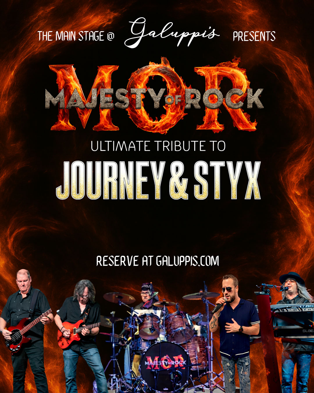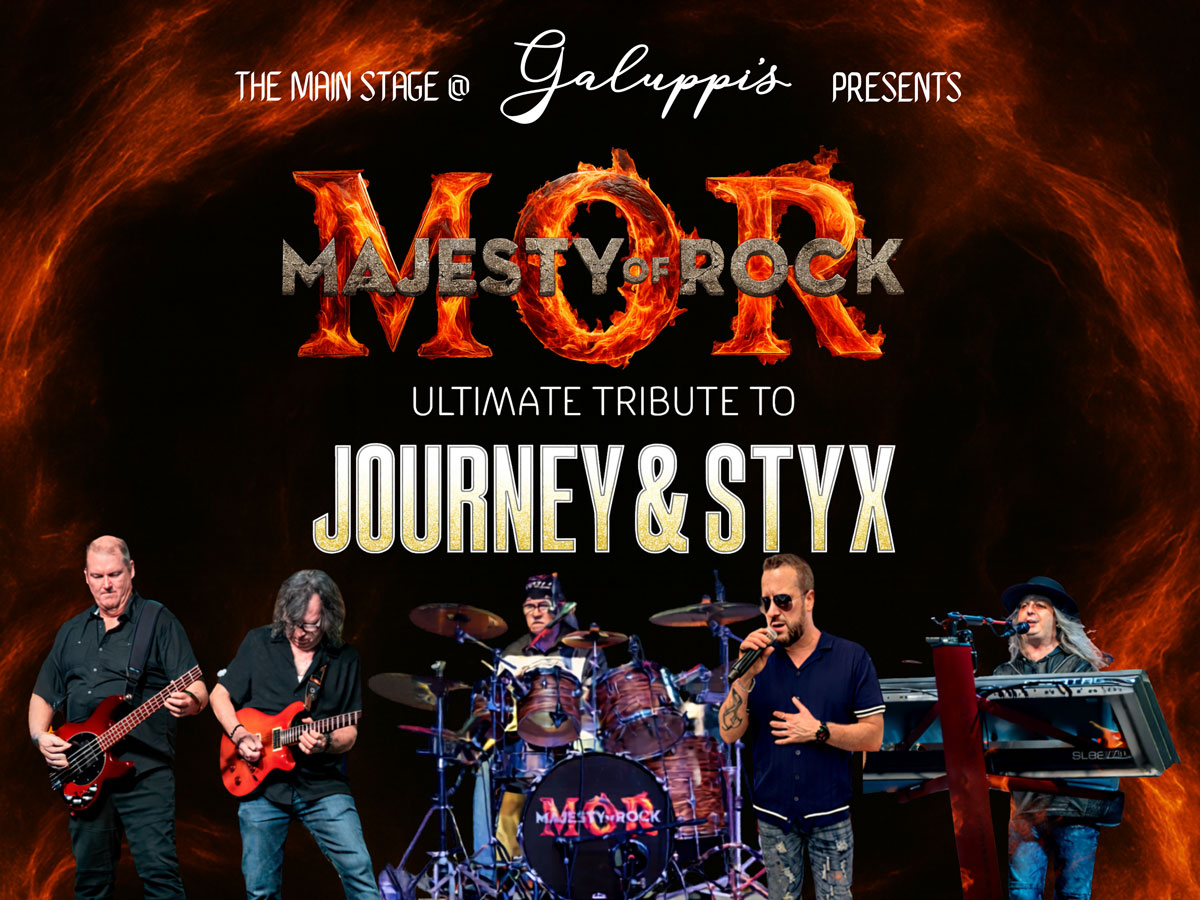 Performing together for more than a decade, Majesty of Rock has become one of the country’s most in-demand Journey and Styx tribute bands. Frontman Julian Vazquez brings versatility and command to the stage, delivering the dynamic vocal range and character needed to authentically represent both bands, capturing the spirit of Dennis DeYoung and Tommy Shaw while honoring Journey’s signature sound.