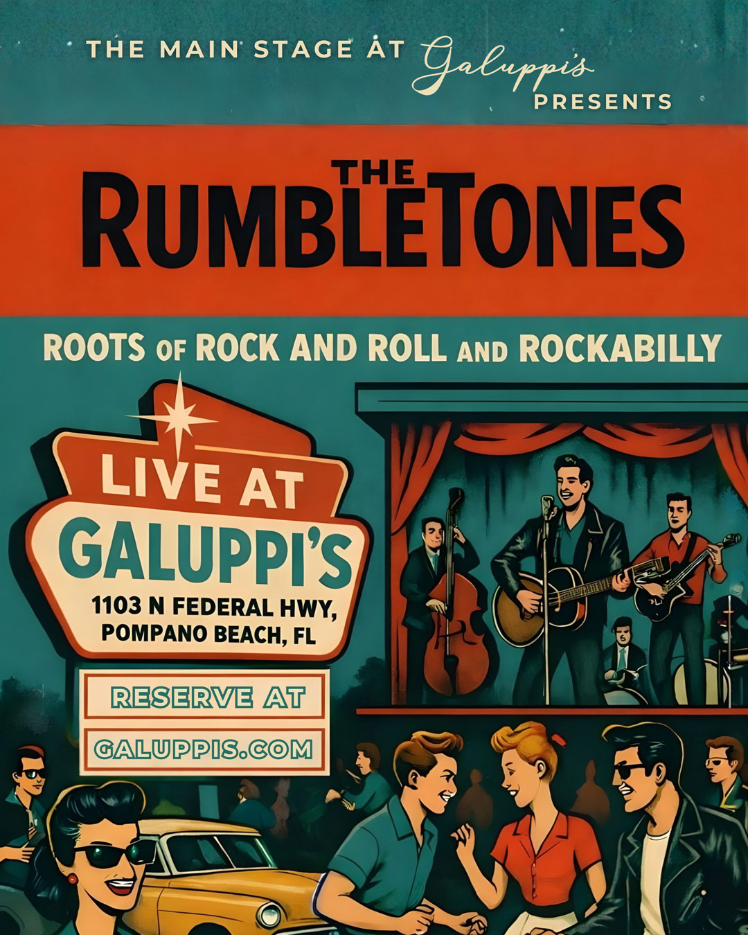 The Rumbletones are a high-octane rockabilly and roots rock ‘n’ roll band that captures the raw, untamed spirit of the 1950s and ’60s—infused with a bold, modern twist. Their sound is a dynamic cocktail of twangy guitar licks, pounding upright bass, rollicking boogie woogie piano, and explosive drums, creating a rhythm that’s equal parts vintage cool and dancefloor fire. With their retro flair and electrifying stage presence, The Rumbletones don’t just play music—they ignite it, keeping the golden age of rock ‘n’ roll alive and shaking for a new generation.